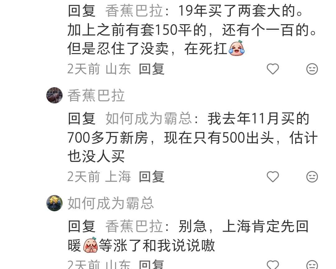 有一个山东的网友说,亏100万就算好了,他亏了400万……原来这位网友他买了四套房子,在工作的地方买了两套房子,孩子的学区房又买了一套,老家有一套,每套房子差不多都亏了100个……